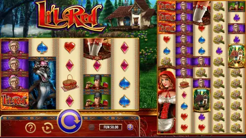 Li’l Red Riches — это видеослот с 5 барабанами и 4 линиями выплат, который предлагает уникальную механику Mega Reels (мега-барабаны). Главная тематика игры посвящена сказочной истории Красной Шапочки: на экране вы увидите саму героиню, корзинку с пирожками, домик бабушки и, конечно же, Большого Злого Волка. Такая атмосфера создает ощущение волшебства и приключений.